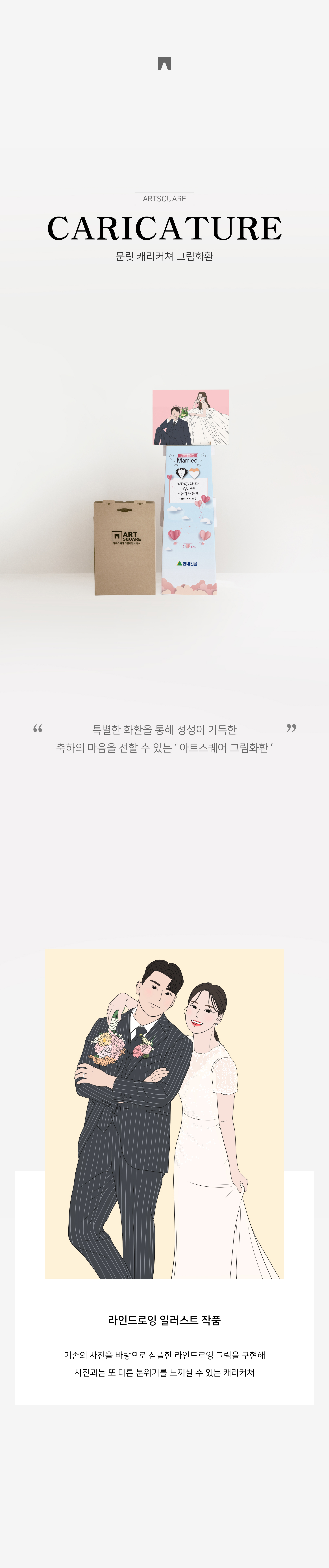 웨딩사진을 분위기 있는 캐리커쳐로 제작할 수 있는 그림화환입니다.
