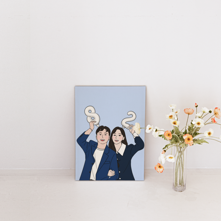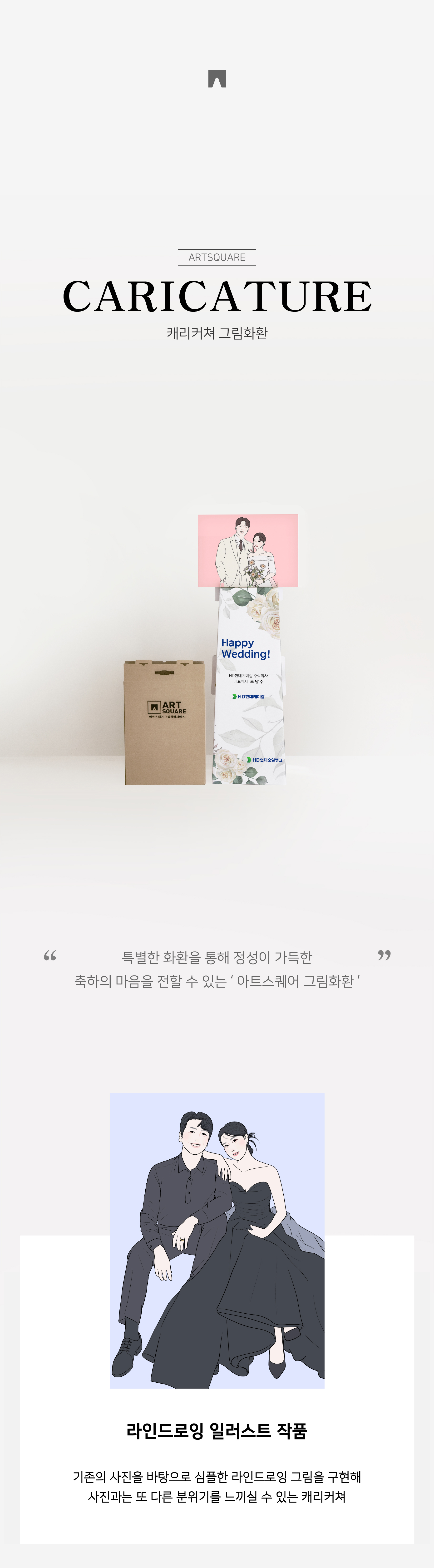 웨딩사진을 분위기 있는 캐리커쳐로 제작할 수 있는 그림화환입니다.