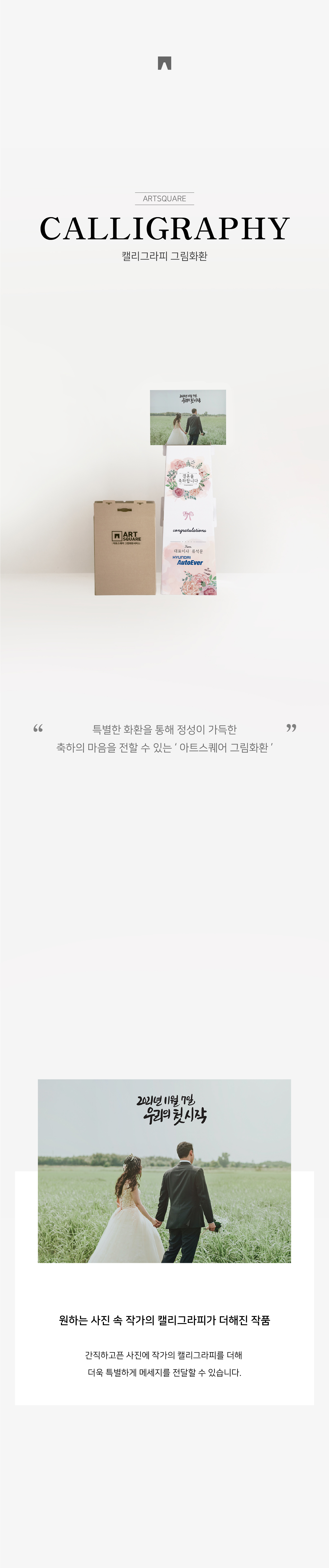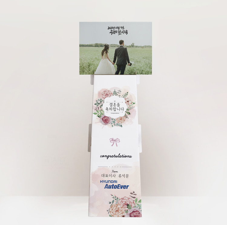 사진에 캘리그라피 문구를 더해 축하의 메세지를 담는 그림화환입니다.
