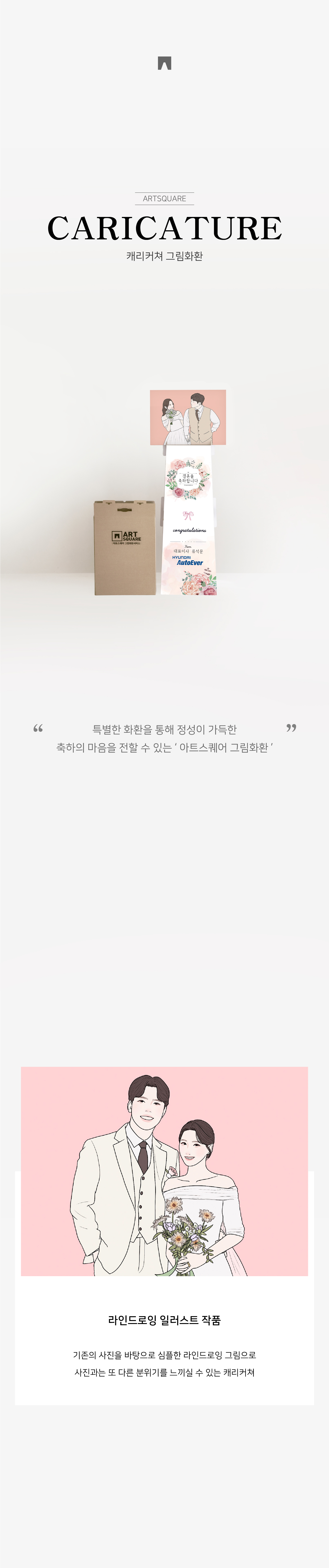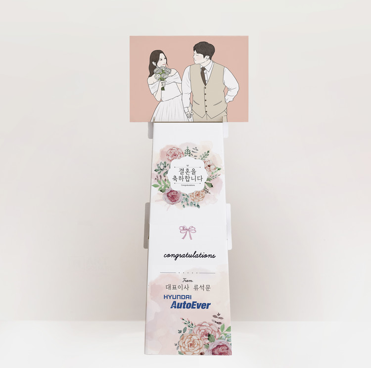 웨딩사진을 분위기 있는 캐리커쳐로 제작할 수 있는 그림화환입니다.